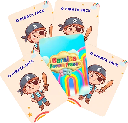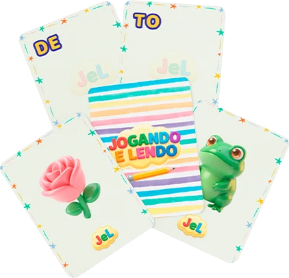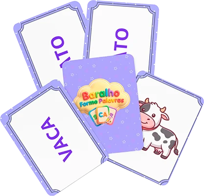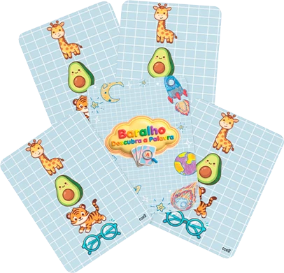 Cartas que contém figuras que se juntam e formam uma palavra nova. Expande o vocabulário!