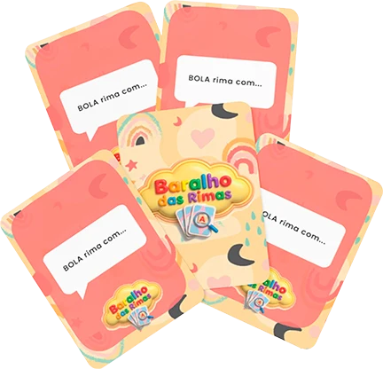 A criança sorteia uma palavra e precisa encontrar outra que rima. Consciência fonológica avançada!