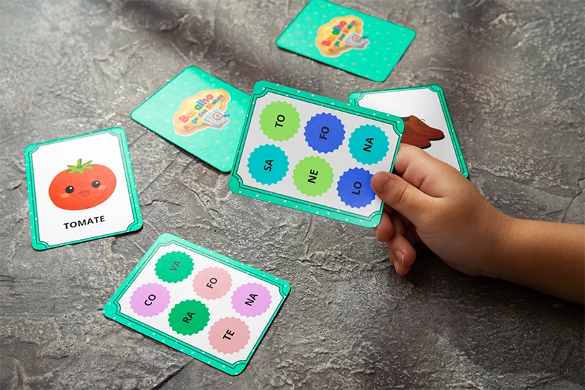 Versão bingo das sílabas! A criança ouve a palavra e marca as sílabas certas. Diversão garantida em grupo!