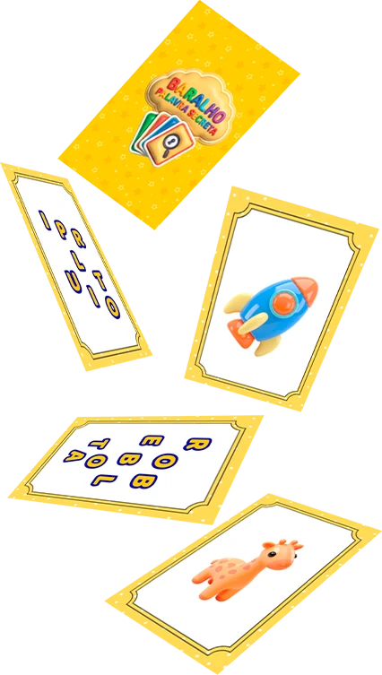 Cartas que contém figuras que se juntam e formam uma palavra nova. Expande o vocabulário!