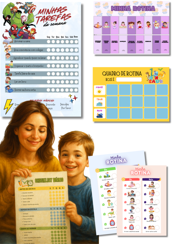 ⭐️ Seu filho vai aprender a seguir suas rotinas sozinho, sem que você precise repetir tudo várias vezes.